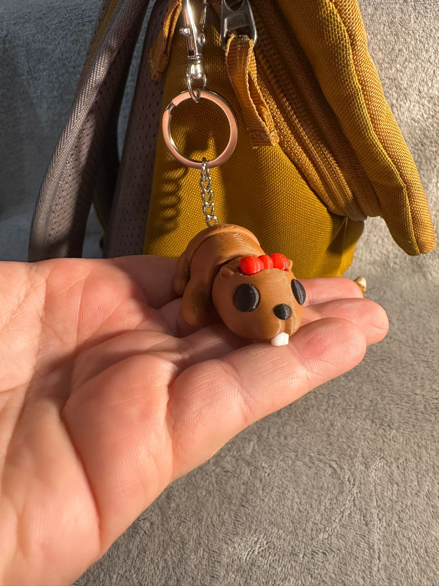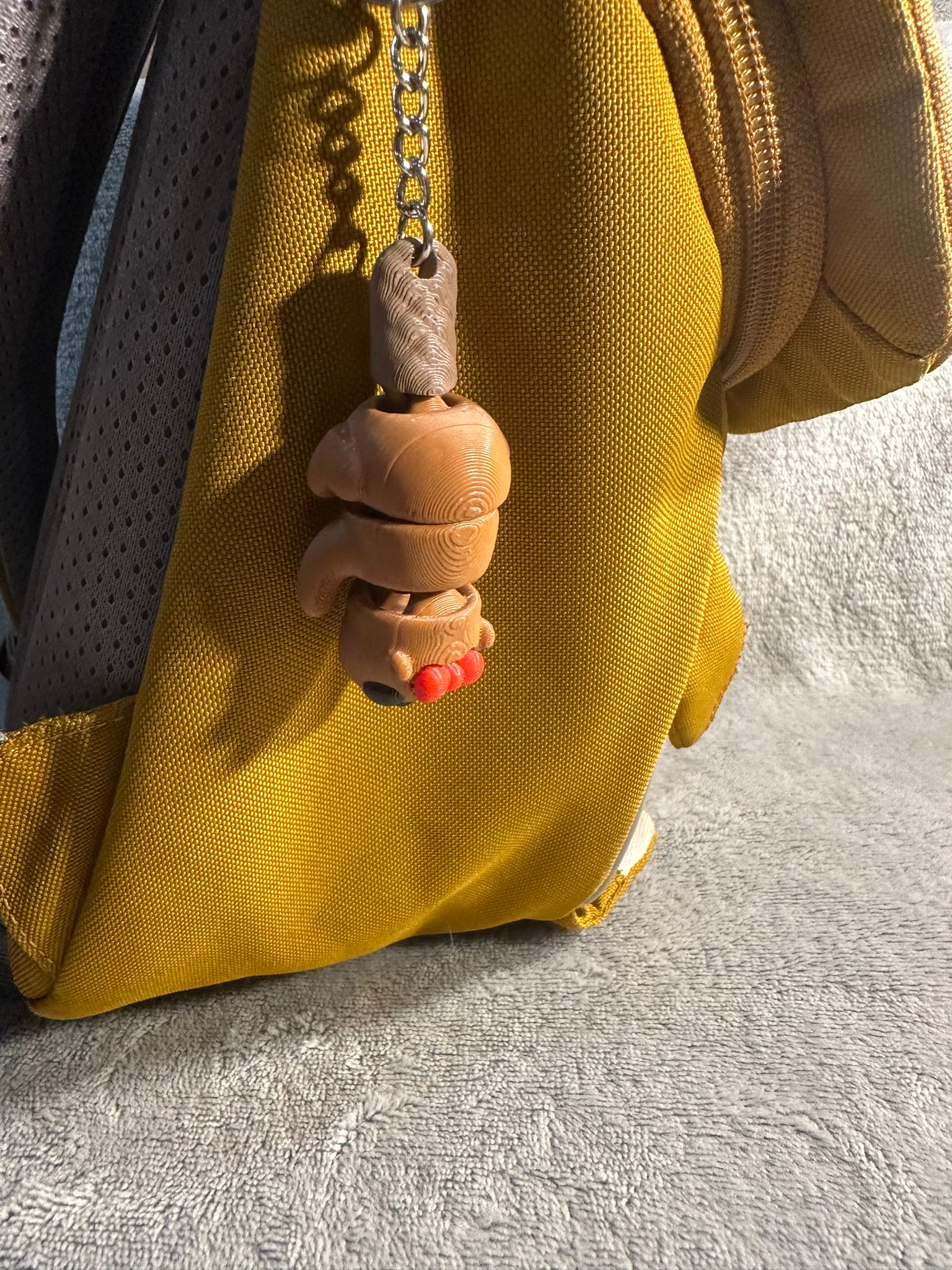 Er ist beweglich und wird mit seiner Länge von ca. 6,5 cm zum Leben erweckt.