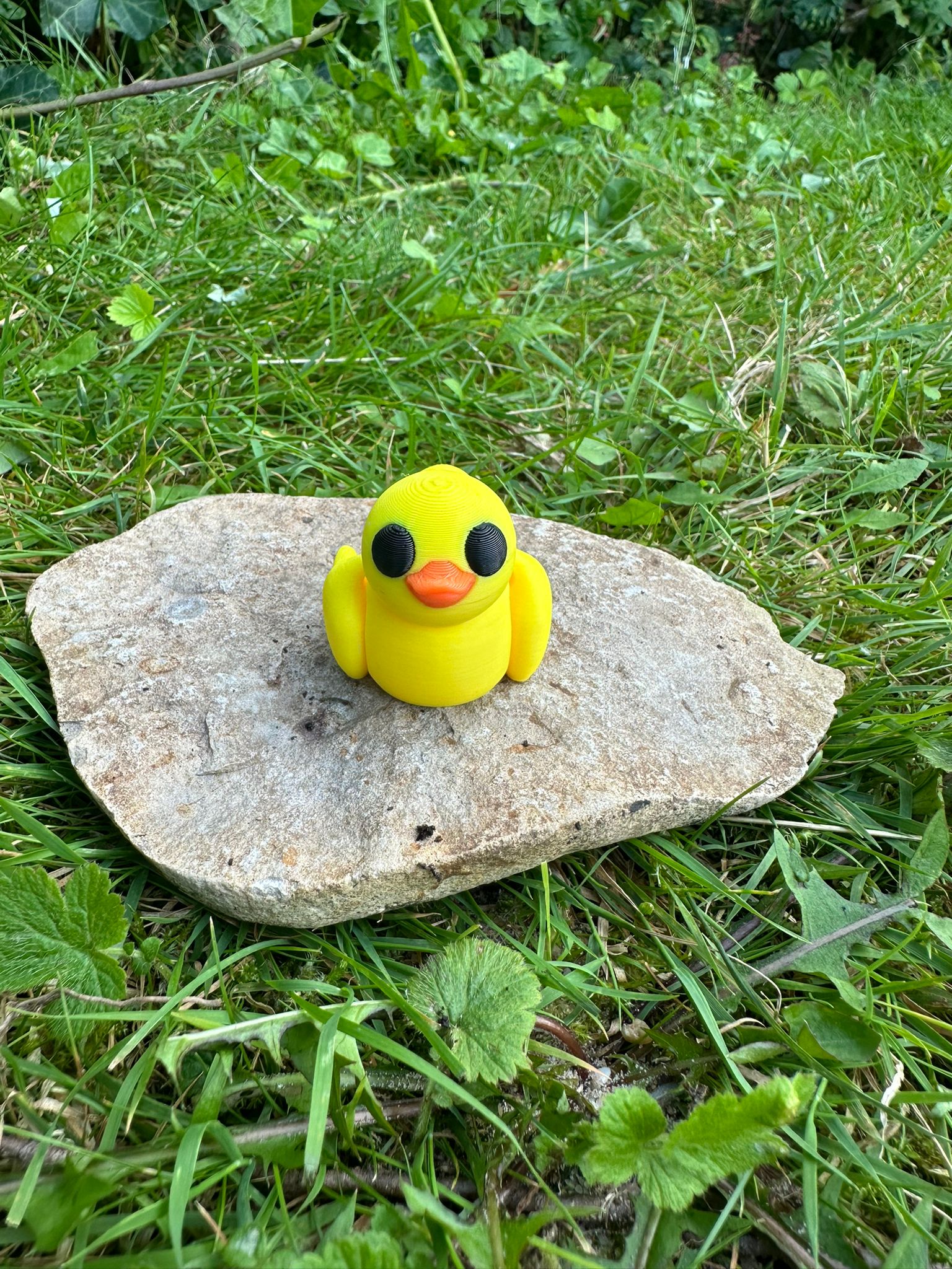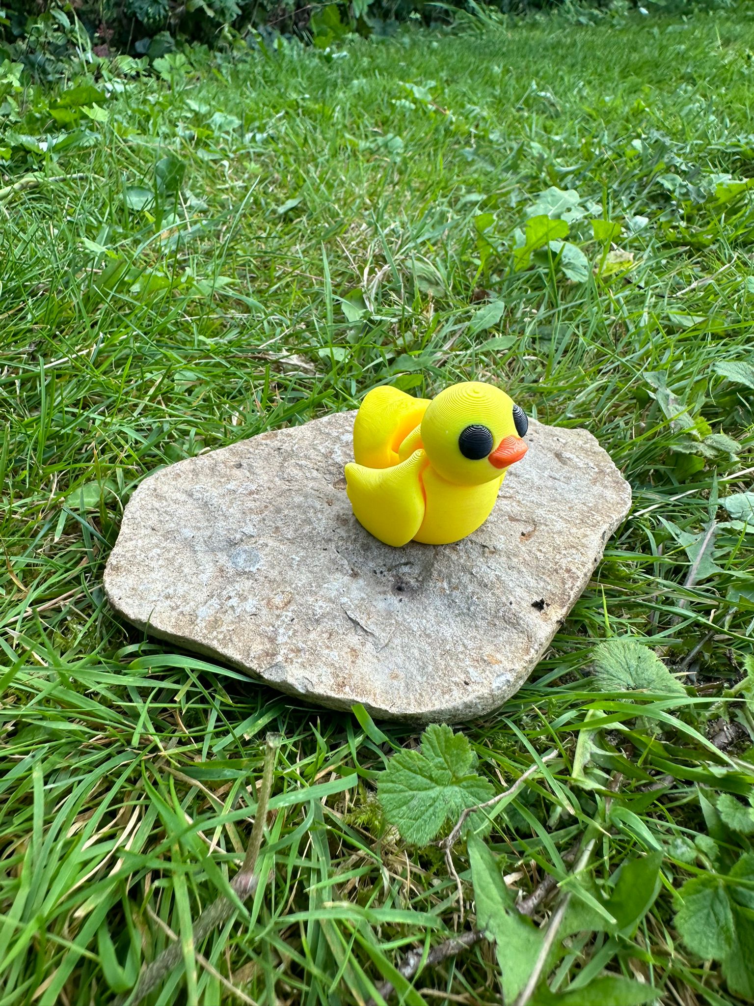 Die kleine Ente schwimmt gerne im Teich oder schnattert mit dir.